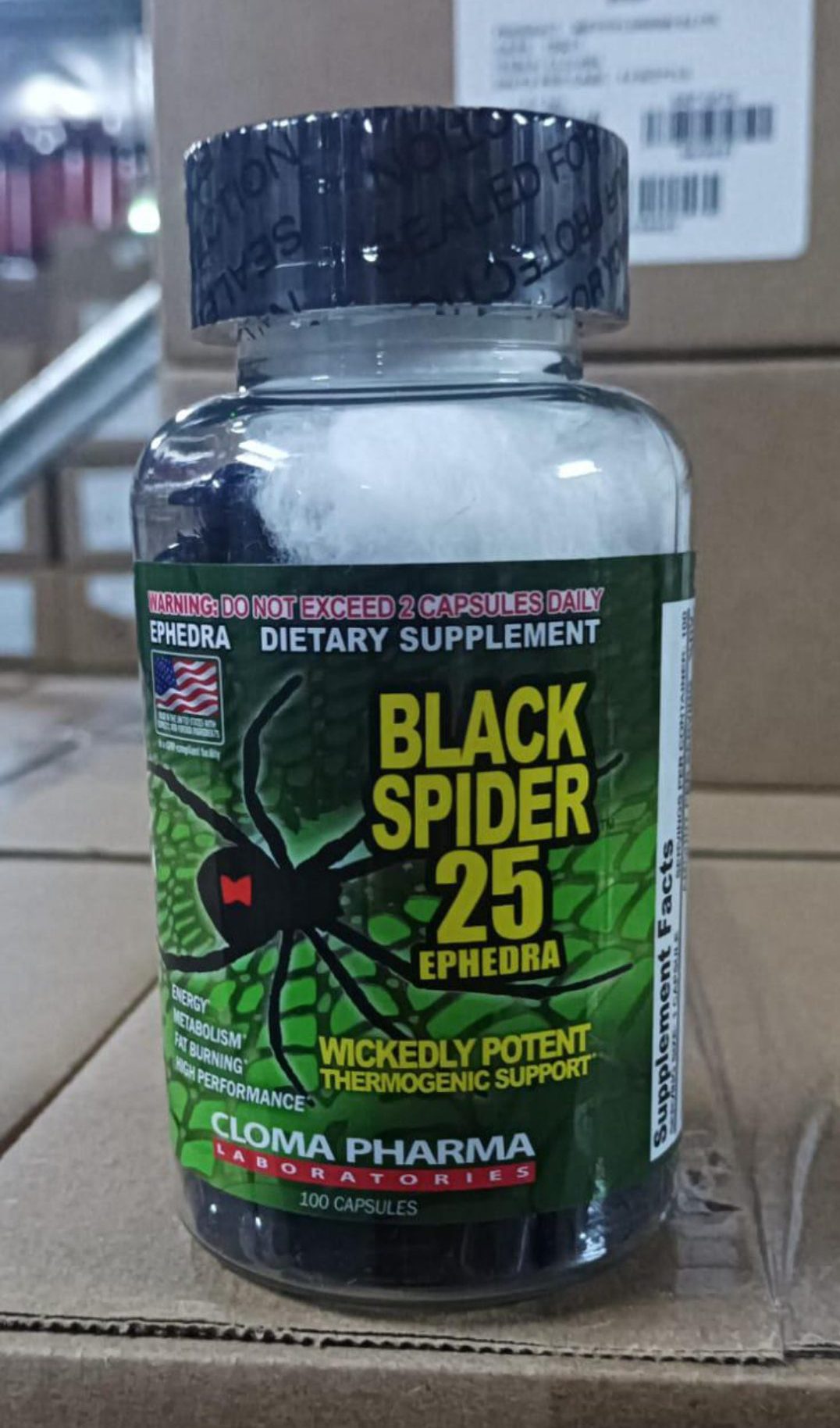 کپسول چربی سوز بلک اسپایدر 25 کلوما فارما .قوی‌ترین چربی‌سوز دنیا کپسول بلک اسپایدر می‌باشد که با دارا بودن افدرین به همراه عصاره کافئین از چربی‌های انباشته شده در بدن به عنوان منبع انرژی استفاده کرده و باعث چربی‌سوزی فوق العاده می‌گردد.